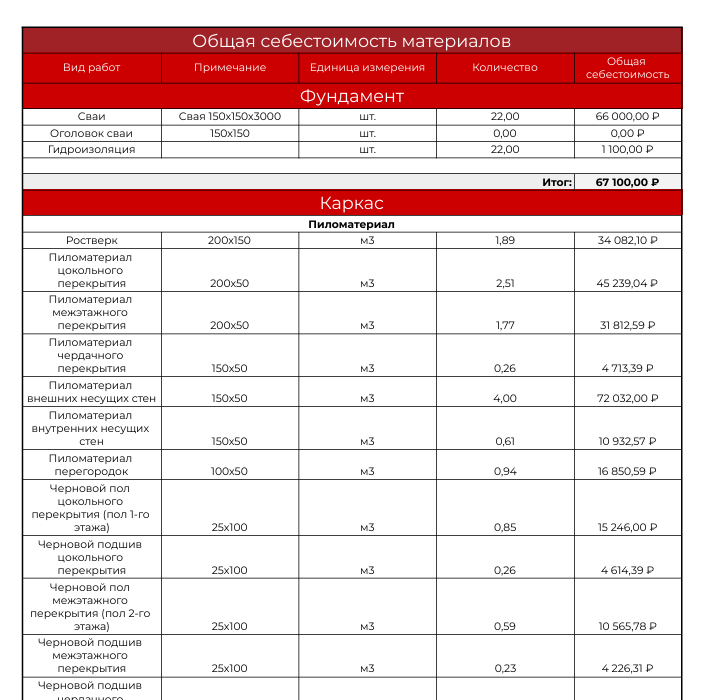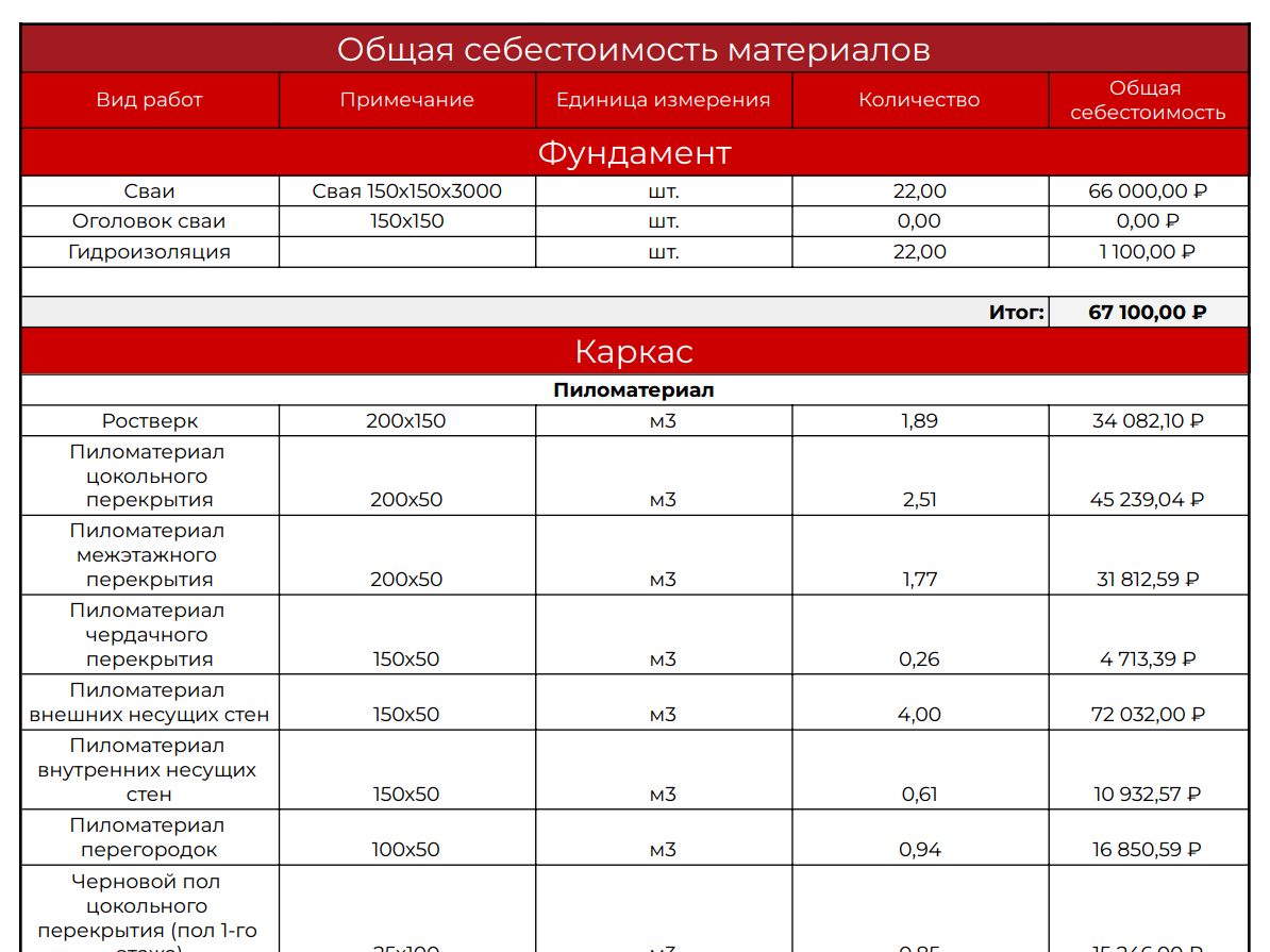 Здесь собраны себестоимости всех основных строительных материалов нужных для каркасного дома. Эта таблица поможет Вам оценить себестоимость вашего дома и при закупке материала не попасться на слишком завышенные наценки продавцов.